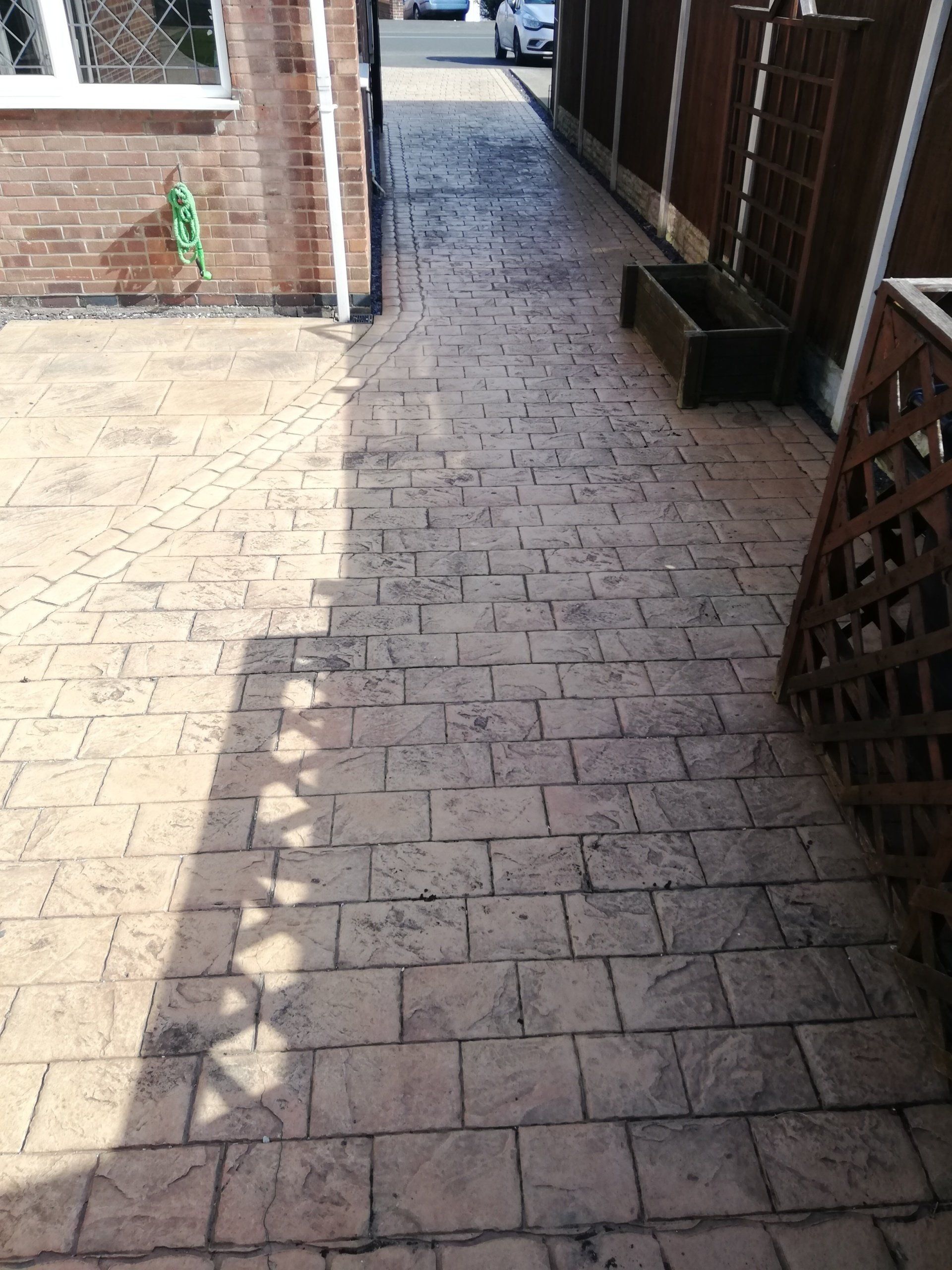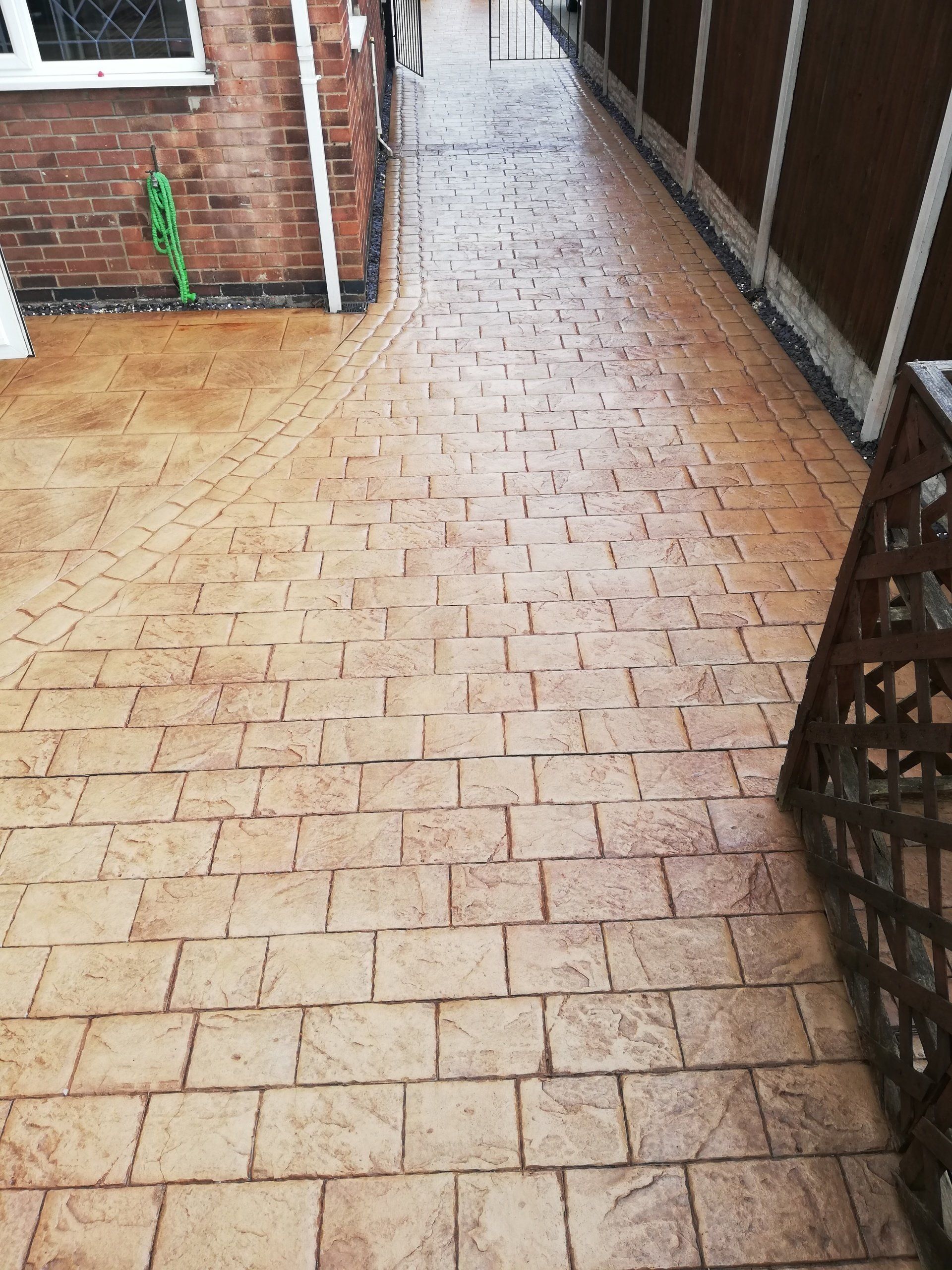 Showing cleaned and sealed with Resiblock Matt Acrylic Pattern Imprinted Concrete sealer